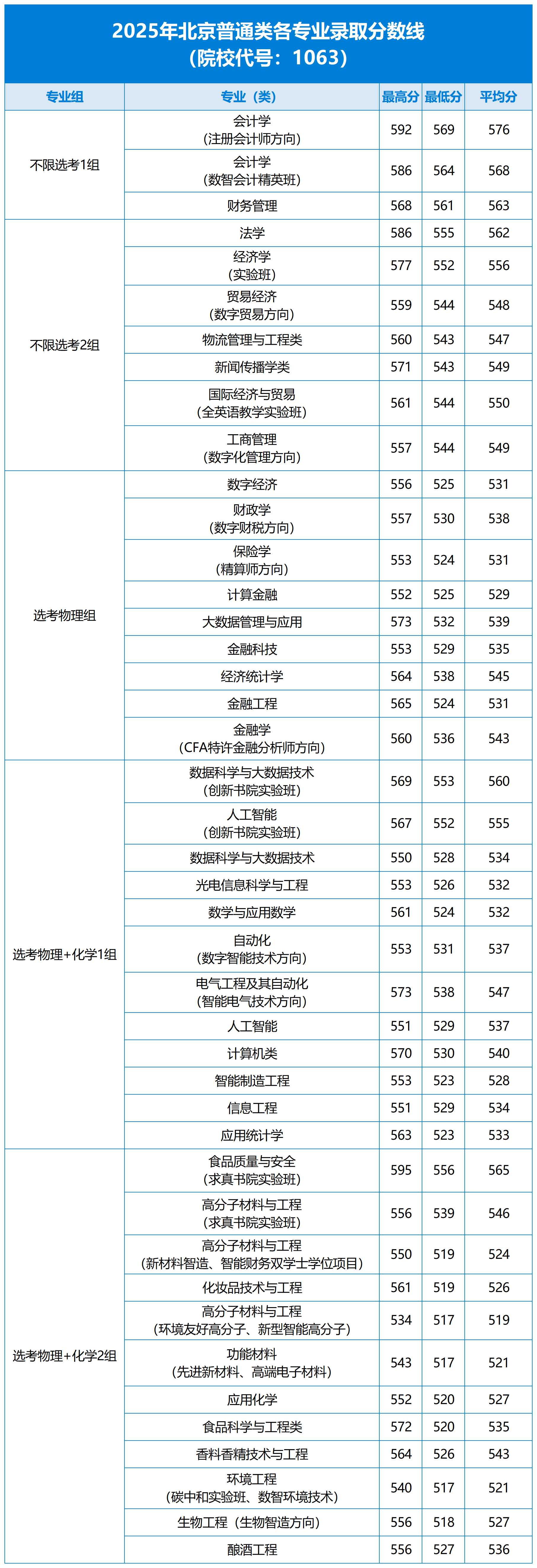 2025年北京高考已落下帷幕,在京各批次投档录取分数线已陆续公布,北达教研组整理了北京工商大学2025年在京专业录取分数线,分享给大家: