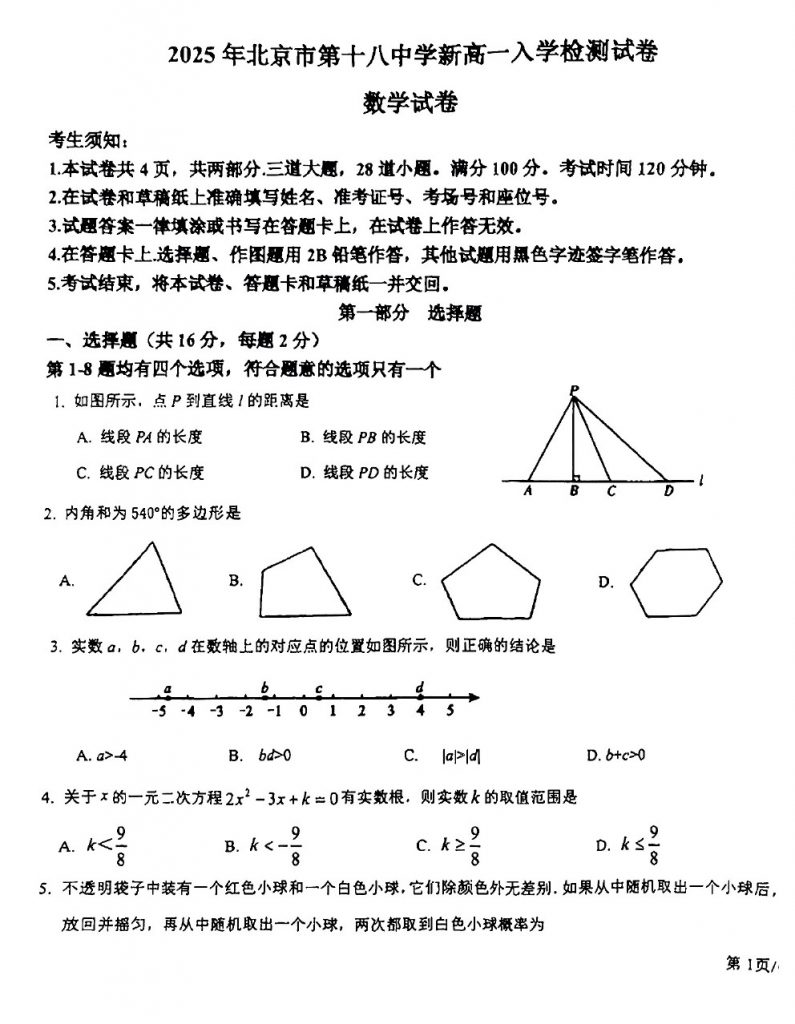 北达教研组整理了2025北京十八中新高一分班考数学试题,看看都考了哪些内容?