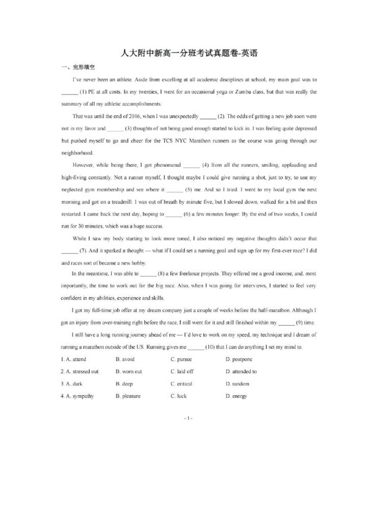 北达教研组整理了2025人大附中新高一分班考试英语试卷及答案,看看都考了哪些内容?