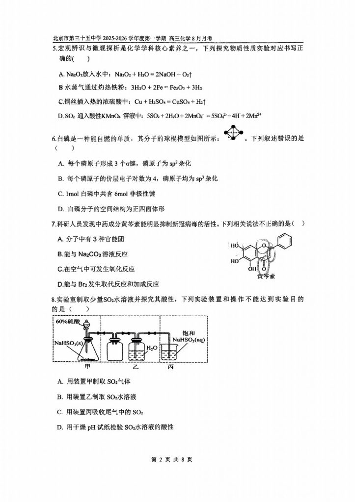 北达教研组整理了2025年北京三十五中高三8月月考化学试卷,看看都考了哪些内容?