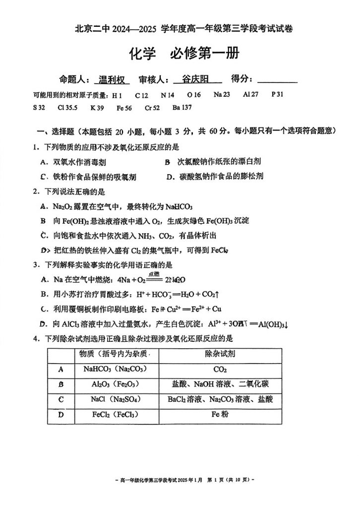 2024北京二中高一(上)学段三段考化学试题 //www.cfjuqp.com/gaokao/74187.html Fri, 22 Aug 2025 01:31:28 +0000 //www.cfjuqp.com/gaokao/?p=74187 北达教研组整理了2024北京二中高一(上)学段三段考化学试题,看看都考了哪些内容?