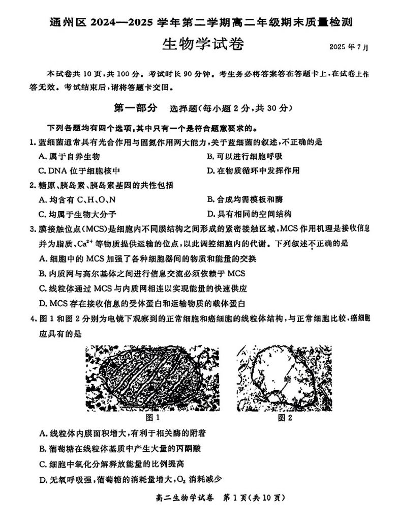 2025北京通州高二(下)期末生物试题 //www.cfjuqp.com/gaokao/73496.html Wed, 30 Jul 2025 07:09:45 +0000 //www.cfjuqp.com/gaokao/?p=73496 2025年北京各区高二(下)期末考已陆续开始进行,北达教研组整理了2025北京通州高二(下)期末生物试题,分享给大家。