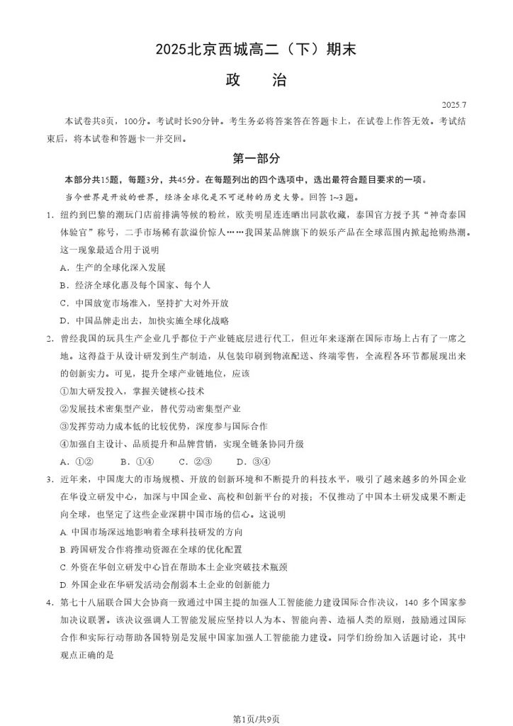 2025北京海淀高二(下)期末政治试题及答案 //www.cfjuqp.com/gaokao/73488.html Wed, 30 Jul 2025 07:04:22 +0000 //www.cfjuqp.com/gaokao/?p=73488 2025年北京各区高二(下)期末考已陆续开始进行,北达教研组整理了2025北京海淀高二(下)期末政治试题及答案,分享给大家。
