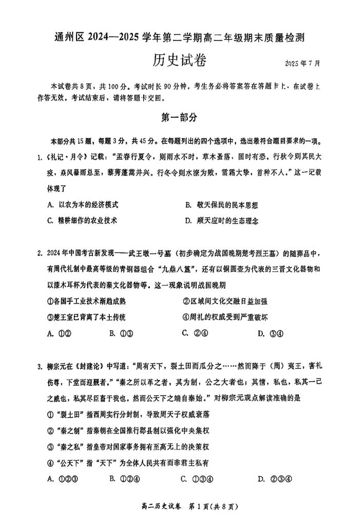 2025北京通州高二(下)期末历史试题及答案 //www.cfjuqp.com/gaokao/73492.html Wed, 30 Jul 2025 07:07:02 +0000 //www.cfjuqp.com/gaokao/?p=73492 2025年北京各区高二(下)期末考已陆续开始进行,北达教研组整理了2025北京通州高二(下)期末历史试题及答案,分享给大家。