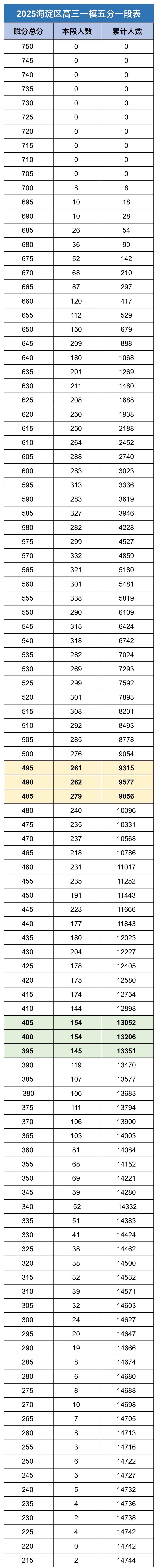 今天,有热心家长分享了2025年海淀高三一模5分1段表出炉(网传版),我们整理出来供大家参考!数据仅供参考,以官方发布为准。