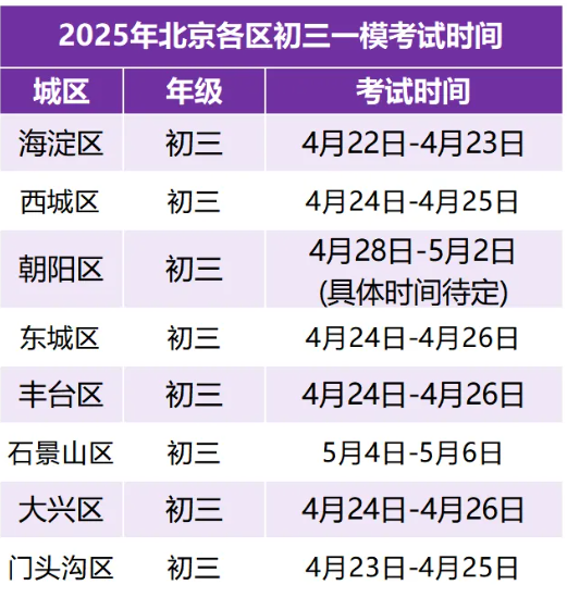 2025北京各区初三一模时间已定!北达复读学校为大家整理了往年初三一模试卷并附免费试题领取通道! 2025年,北京初三一模已陆续拉开帷幕,个别城区考试时间较往年有所调…
