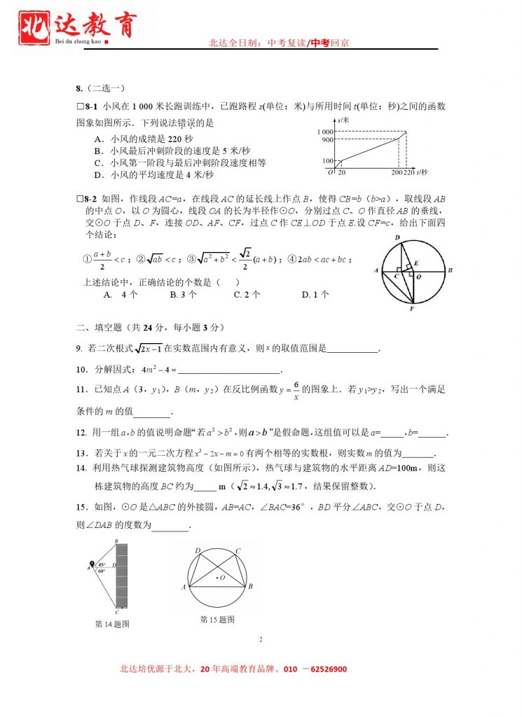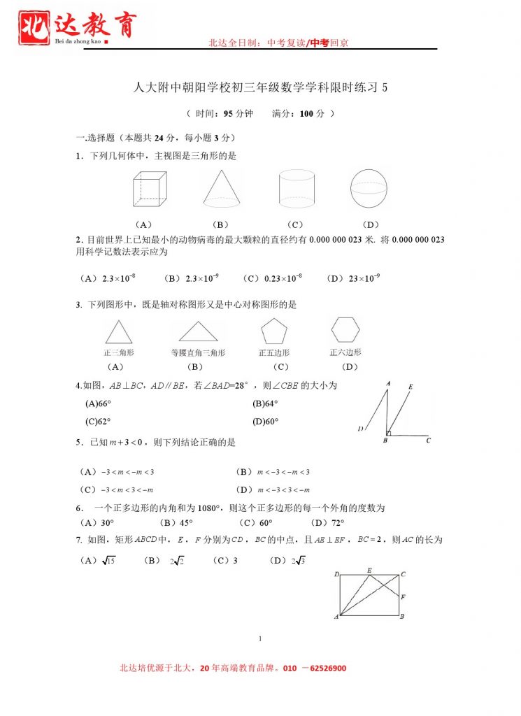 北达教研组收集整理了人大附中朝阳学校2025初三(下)统练五数学试卷,分享给大家,快来下载复习吧。