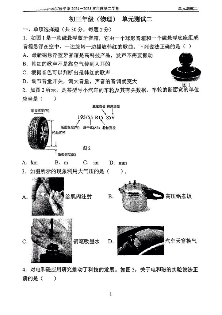 北达教研组收集整理了2025北师大实验中学初三3月月考物理试卷,分享给大家,快来下载复习吧。