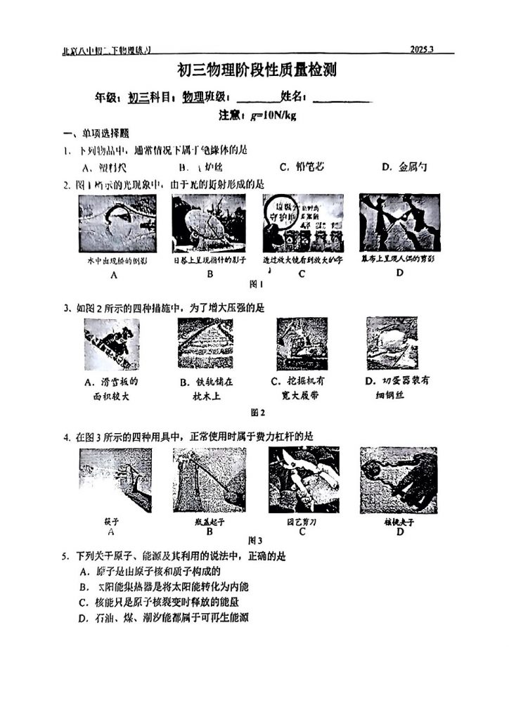 北达教研组收集整理了2025北京八中初三零模物理试卷,分享给大家,快来下载复习吧。