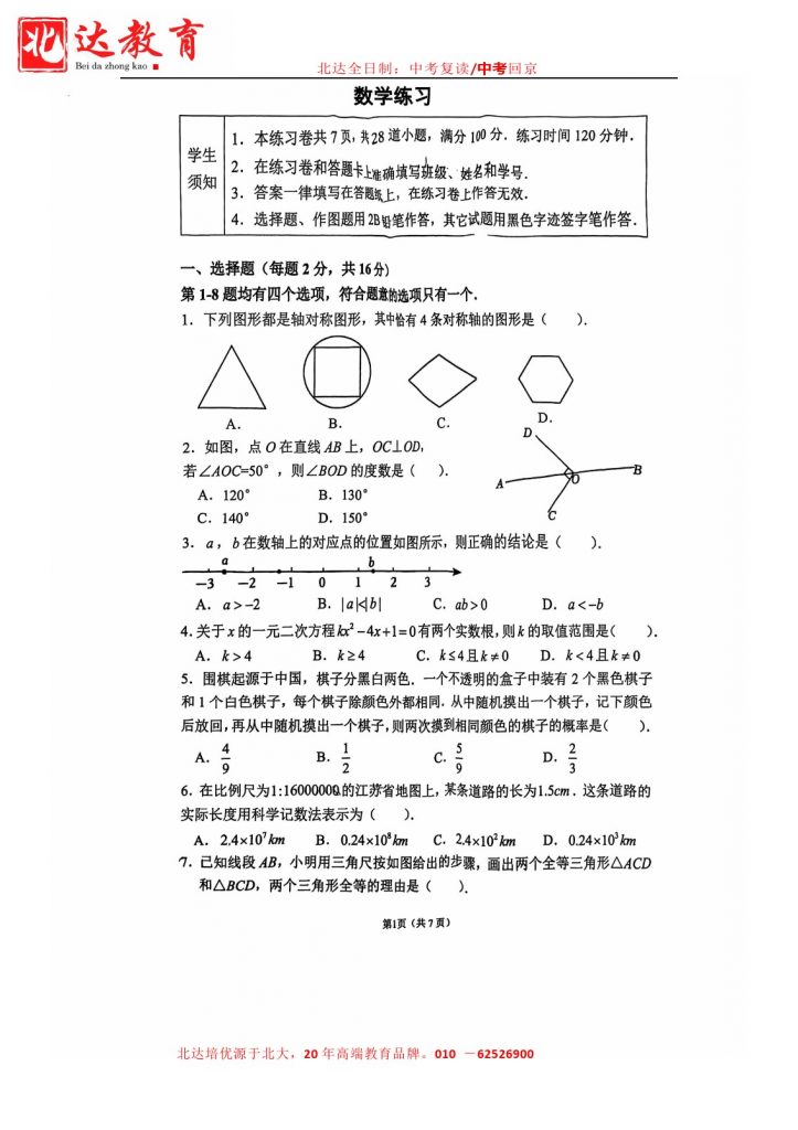 北达教研组收集整理了2025北京四中初三零模数学试卷,分享给大家,快来下载复习吧。 北京北达全日制学校,中高考复读,外地回京中高考 电话咨询:400-6168182 010-625…