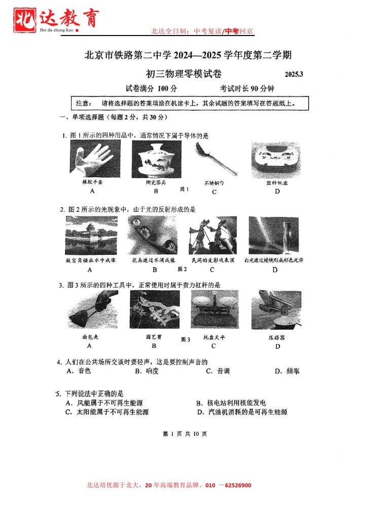 北达教研组收集整理了2025北京铁二中初三零模物理试题,分享给大家,快来下载复习吧。 北京北达全日制学校,中高考复读,外地回京中高考 电话咨询:400-6168182 010-62…