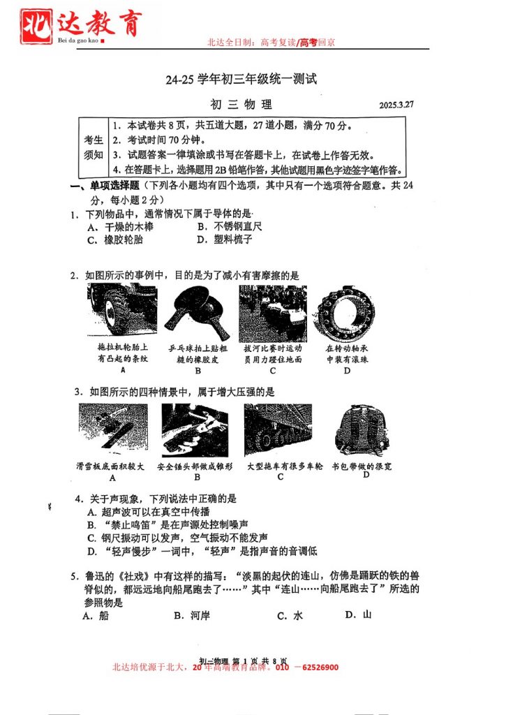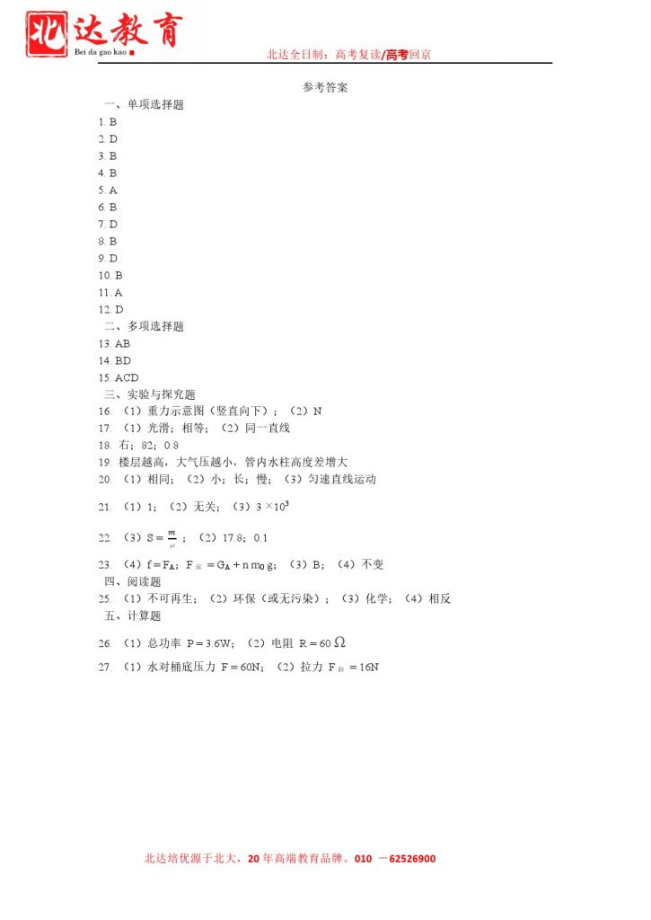 北达教研组收集整理了2025北京三十五中初三零模物理试题及答案,分享给大家,快来下载复习吧。 北京北达全日制学校,中高考复读,外地回京中高考 电话咨询:400-6168182 01…