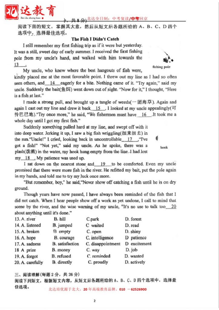 北达教研组收集整理了2025北京育才学校初三零模英语试题及答案,分享给大家,快来下载复习吧。 北京北达全日制学校,中高考复读,外地回京中高考 电话咨询:400-6168182 01…