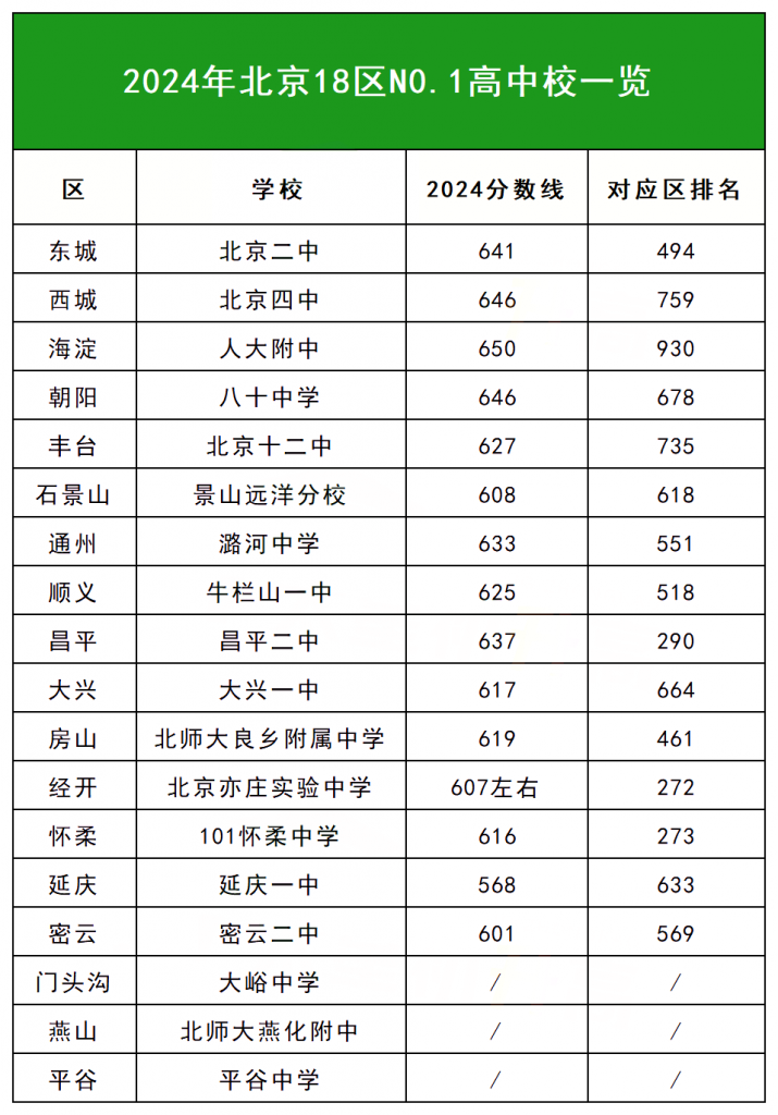 北京北达中考复读学校整理了北京18区排名第一的高中校,分享给大家。