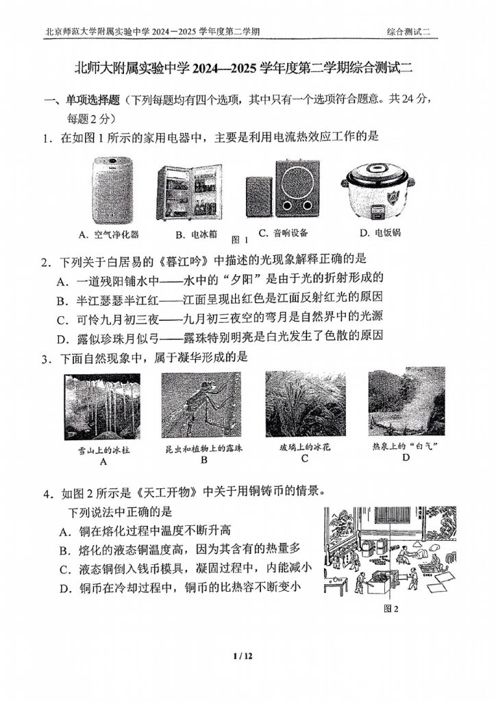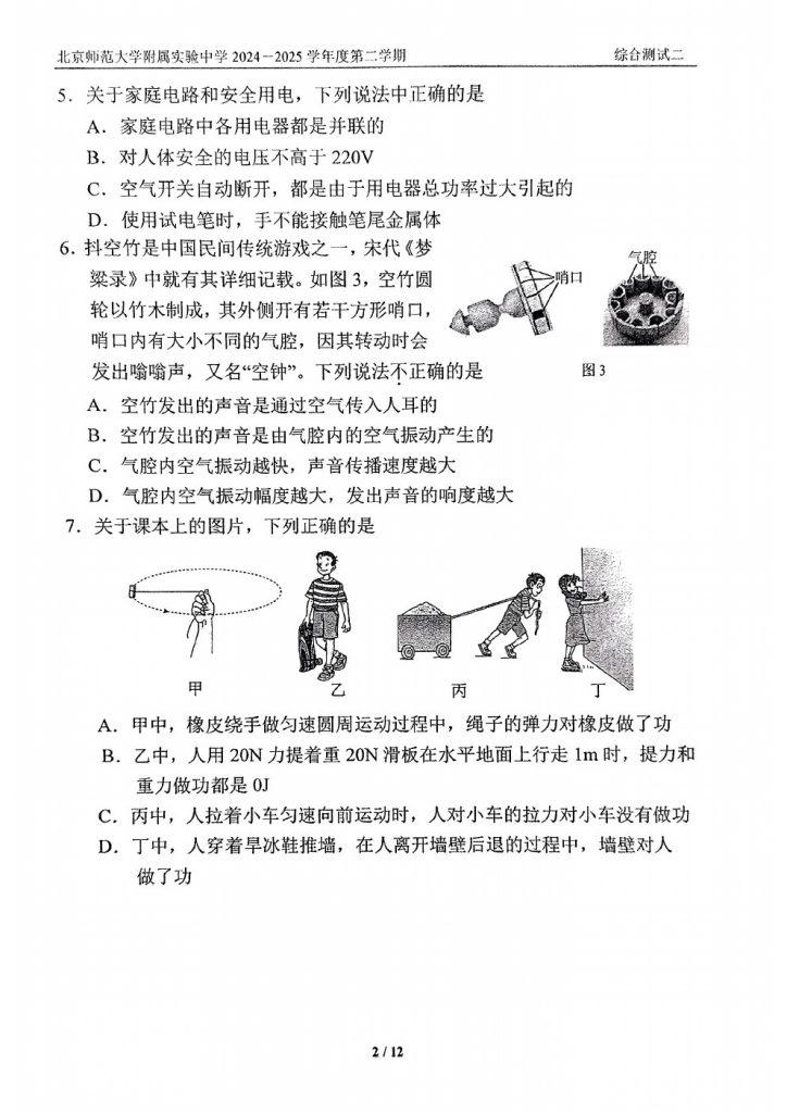 首页 初三试题 2025北师大实验中学初三零模物理试题