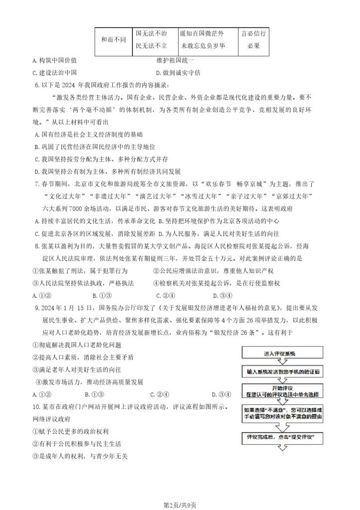 北达教研组收集整理了2024清华附中初三3月月考道法试题及答案,分享给大家,快来下载复习吧。