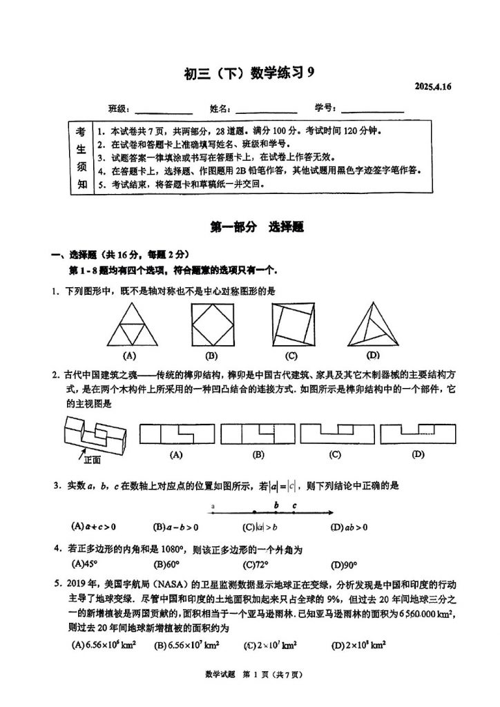 北达教研组收集整理了2025北京人大附中初三4月月考数学试题,分享给大家,快来下载复习吧。