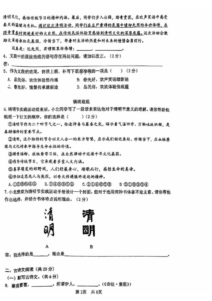 2025北京各区初二期中考已陆续开始,北达教研组整理了2025北京一零一中初二(下)期中语文试题,分享给大家。