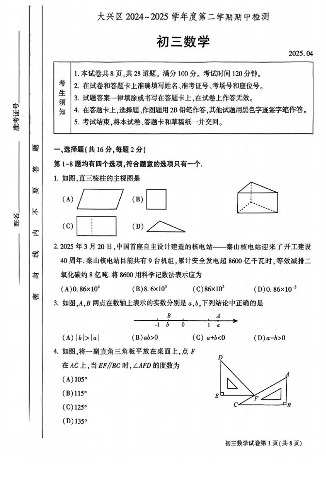2025北京各区初三一模已陆续开始,北达教研组整理了2025北京大兴区初三一模数学试题及答案,分享给大家。快来下载复习吧。