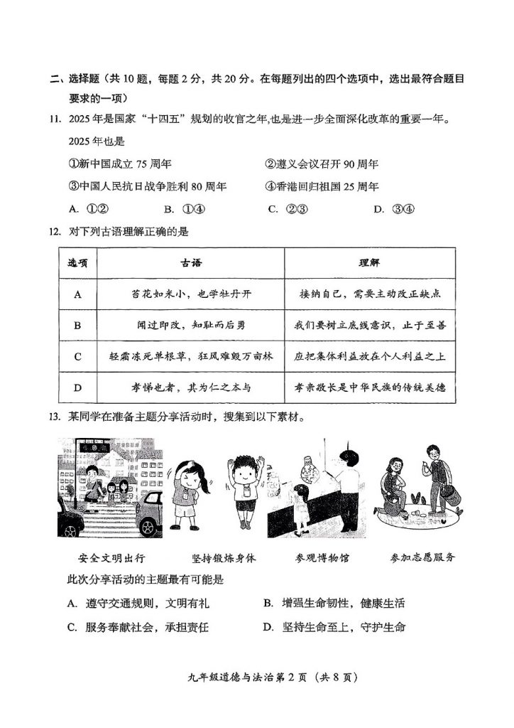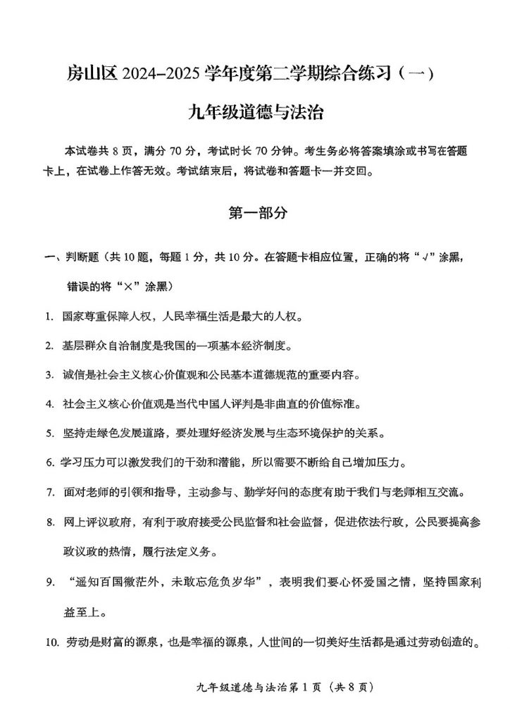 2025北京各区初三一模已陆续开始,北达教研组整理了2025北京房山区初三一模道德与法治试题及答案,分享给大家。快来下载复习吧。