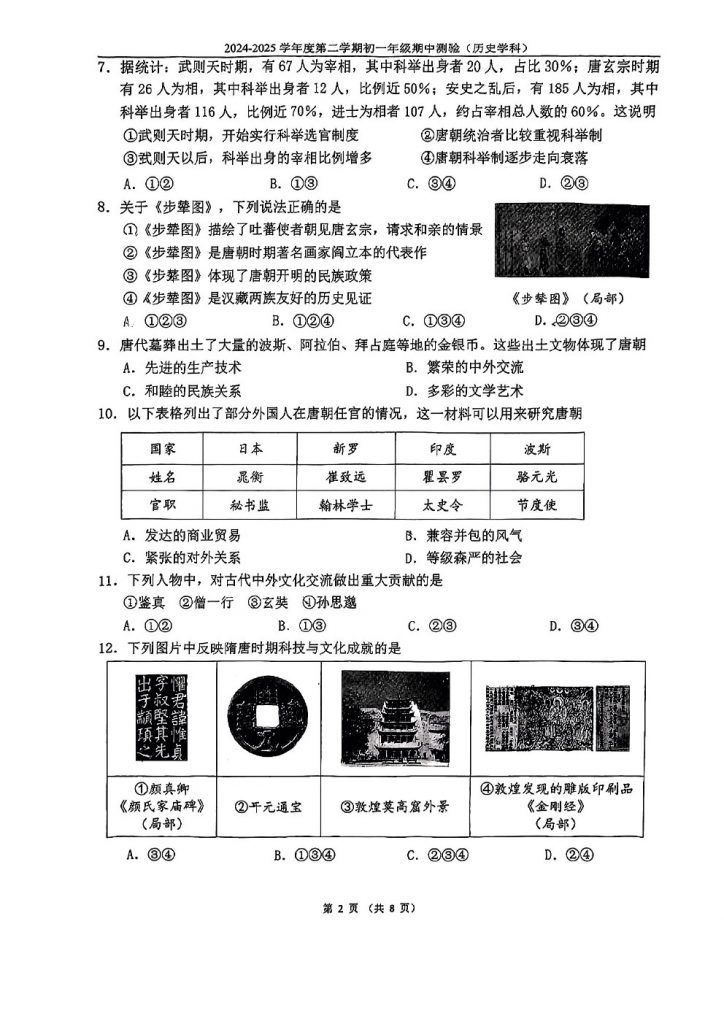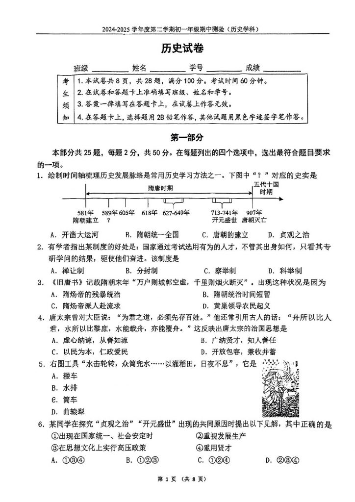 首页 初一试题 2025北京四中初一(下)期中历史试题