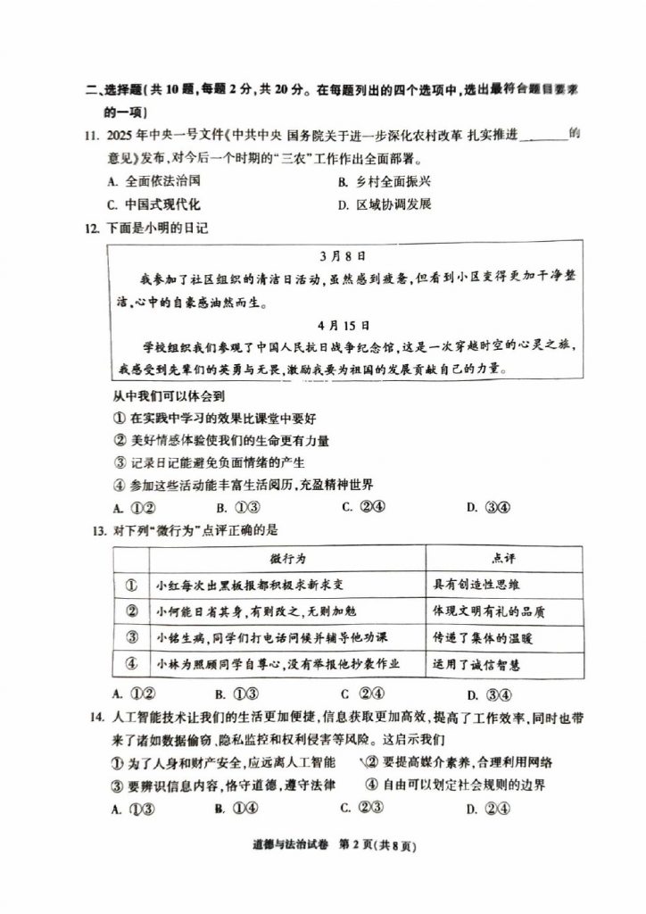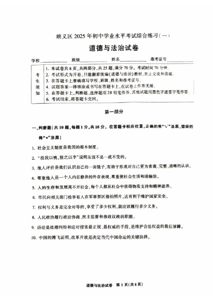 2025北京各区初三一模已陆续开始,北达教研组整理了2025北京顺义区初三一模道法试题及答案,分享给大家。快来下载复习吧。