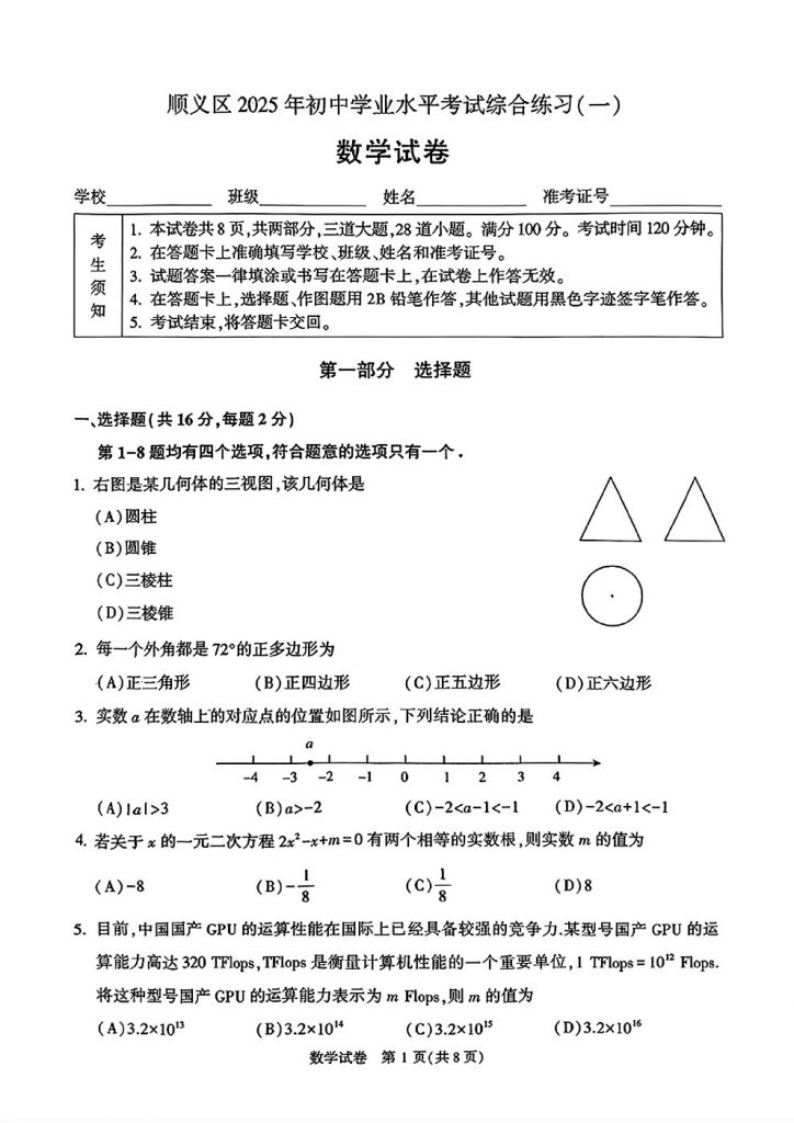 2025北京各区初三一模已陆续开始,北达教研组整理了2025北京顺义区初三一模数学试题及答案,分享给大家。快来下载复习吧。