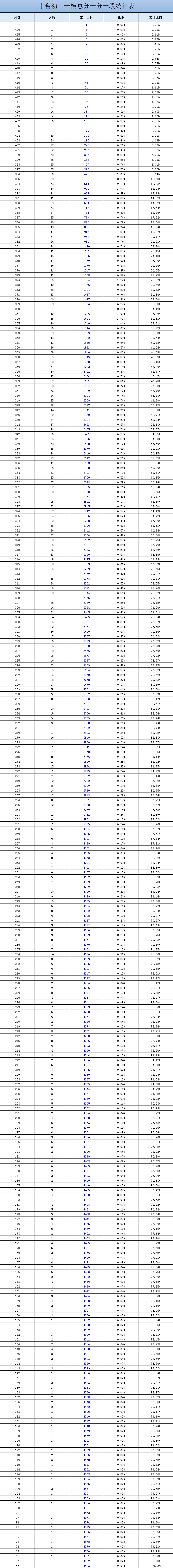 2025北京丰台初三一模一分一段表来了~