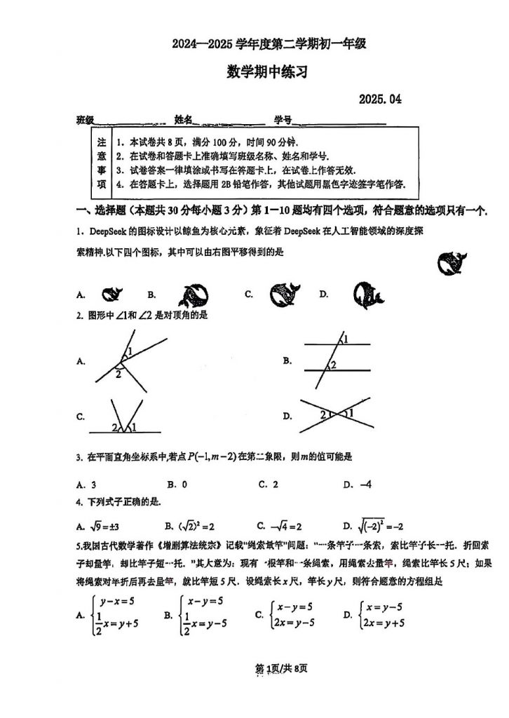 2025北京各区初一期中考已陆续开始,北达教研组整理了2025北京理工大附中初一(下)期中数学试题,分享给大家。