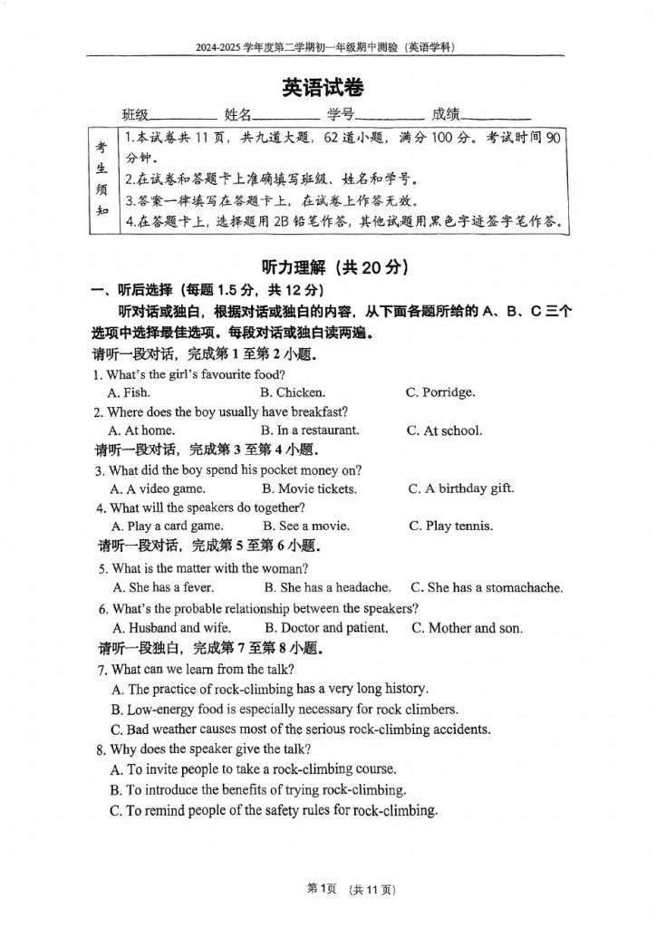 2025北京各区初一期中考已陆续开始,北达教研组整理了2025北京四中初一(下)期中英语试题,分享给大家。