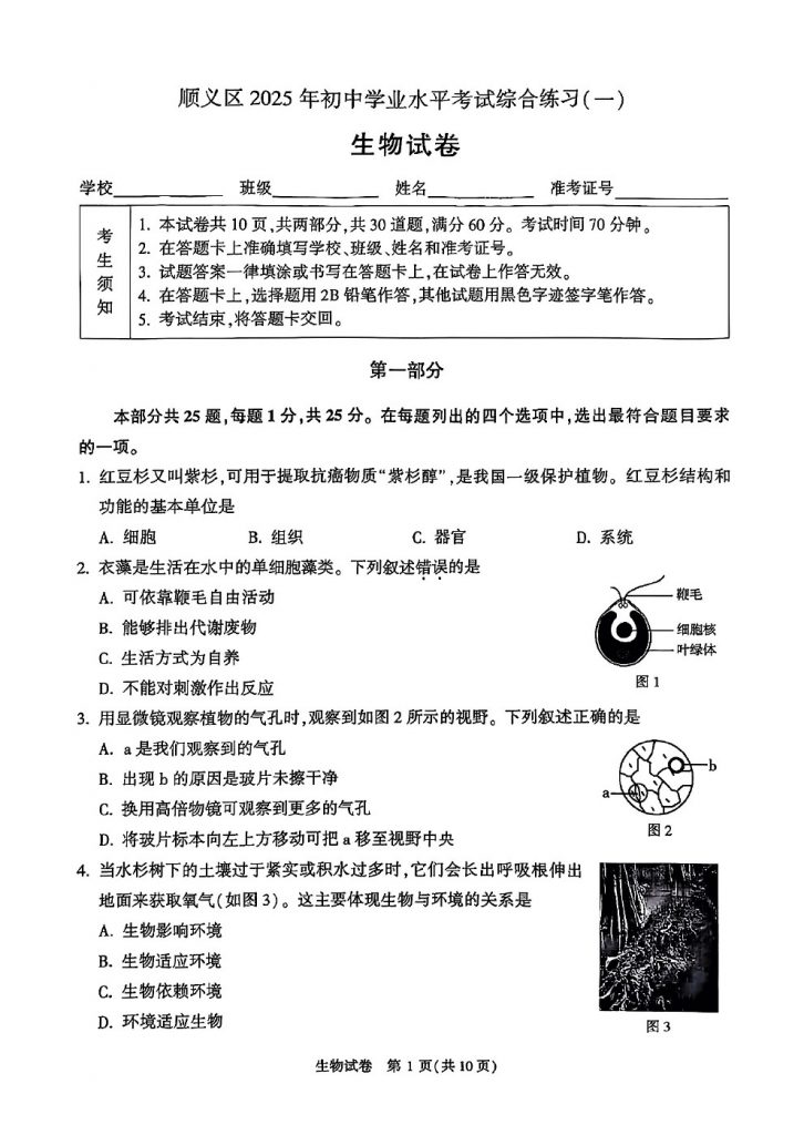 2025北京各区初二一模已陆续开始,北达教研组整理了2025顺义初二一模生物试题及答案,分享给大家。快来下载复习吧。