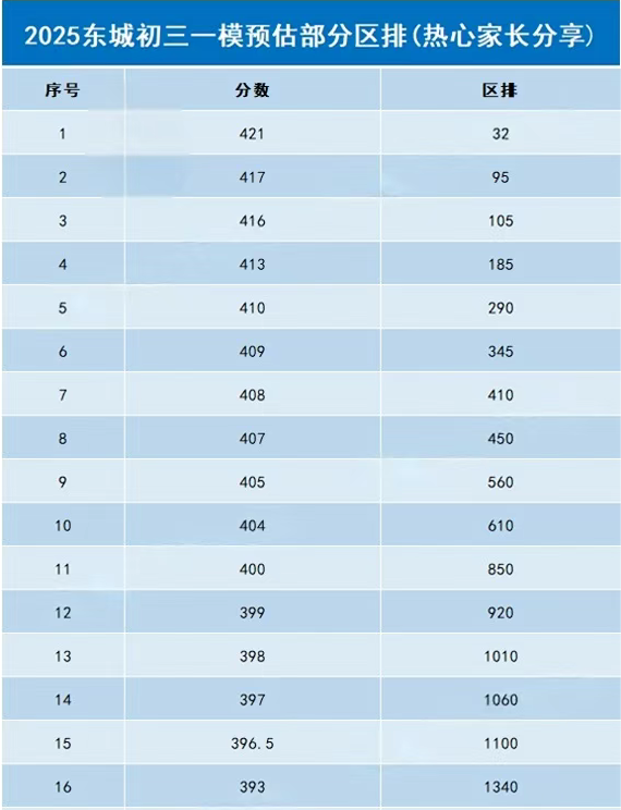 北京各区2025初三一模考试已陆续结束,北达教研组整理了北京东城区2025初三一模区排名(网传版)详情如下: