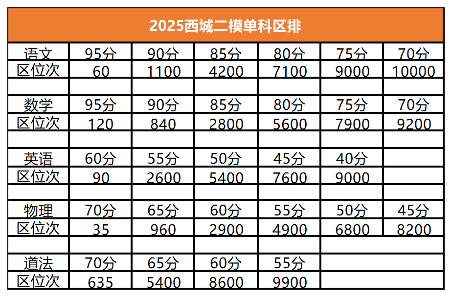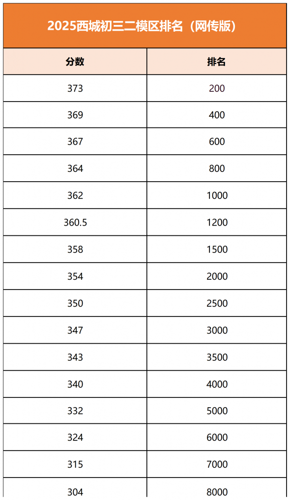 2025北京西城区初三二模区排名出炉!近日有热心家长分享了本次西城初三二模的排名数据,北达教研组整理出来供大家参考,以官方发布为准。据了解,本次西城初三二模总分400分,部分直升的…