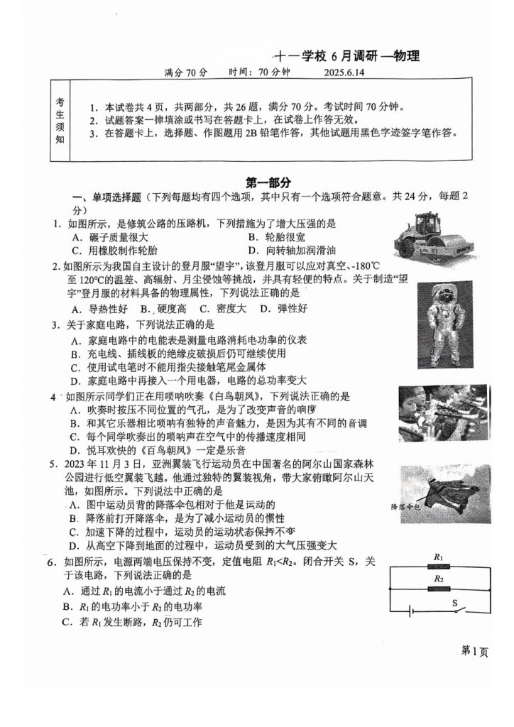 2025北京北达教育竞技俱乐部即将来临,北达教研组整理了北京十一学校2025年初三三模物理试题,分享给大家: