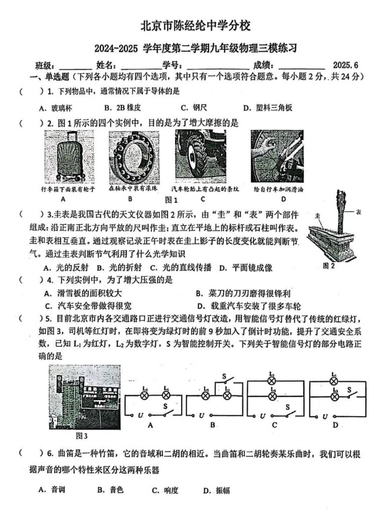 2025北京北达教育竞技俱乐部即将来临,北达教研组整理了2025北京陈经纶中学分校初三三模物理试题,分享给大家: