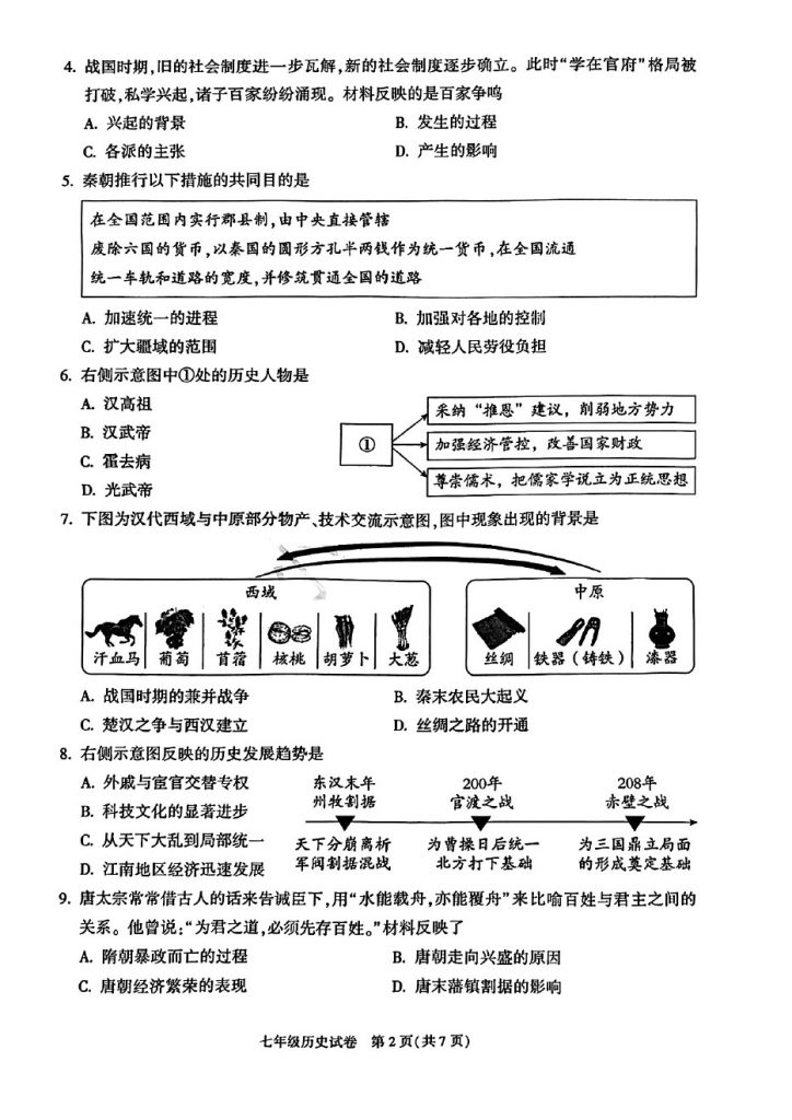 首页 初一试题 2025朝阳初一(下)期末历史试题及答案