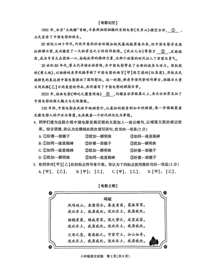 2025年北京各区初二(下)期末考已陆续开始进行,北达教研组整理了2025朝阳初二(下)期末语文试题及答案,分享给大家。