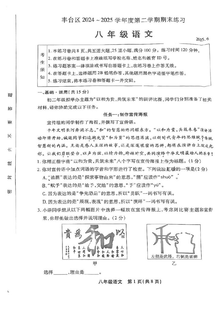 首页 初二试题 2025北京丰台区初二(下)期末语文试题