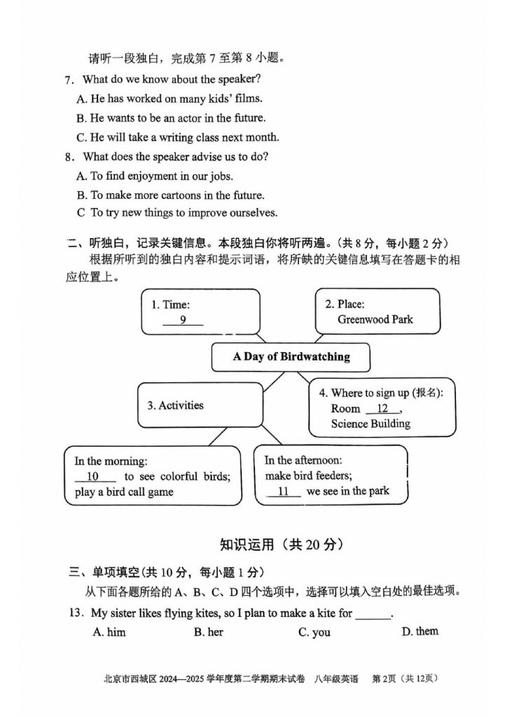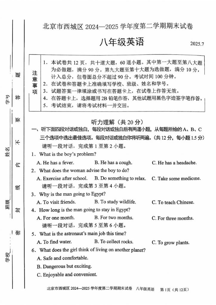 2025年北京各区初二(下)期末考已陆续开始进行,北达教研组整理了2025西城初二(下)期末英语试题,分享给大家。