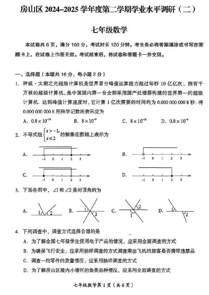 2025年北京各区初一(下)期末考已陆续开始进行,北达教研组整理了2025北京房山区初一(下)期末数学试题,分享给大家。