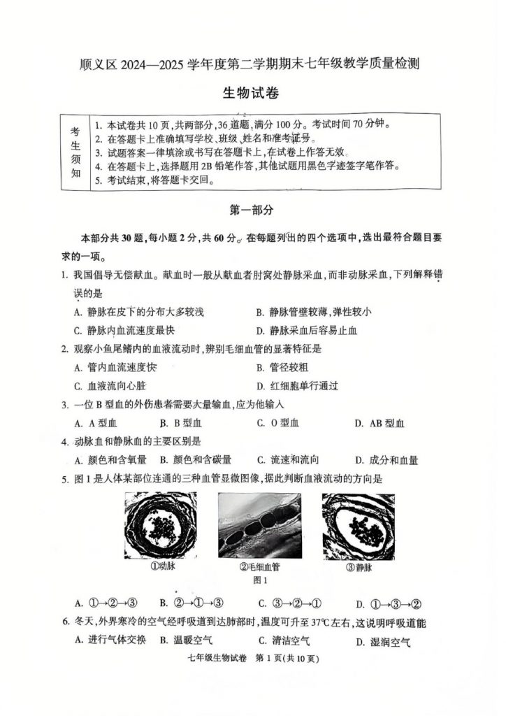 2025年北京各区初一(下)期末考已陆续开始进行,北达教研组整理了2025北京顺义区初一(下)期末生物试题,分享给大家。