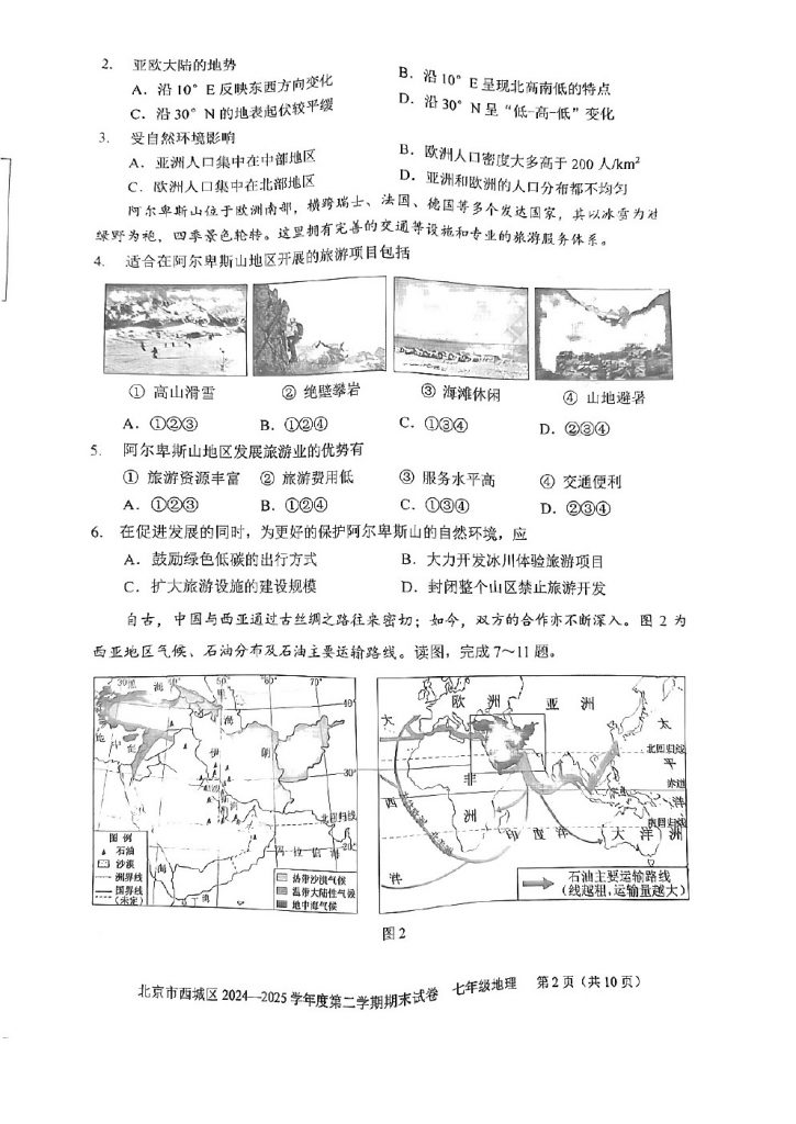 首页 初一试题 2025西城初一(下)期末地理试题及答案
