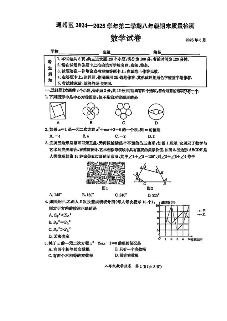 2025年北京各区初二(下)期末考已陆续开始进行,北达教研组整理了2025通州初二(下)期末数学试题及答案,分享给大家。