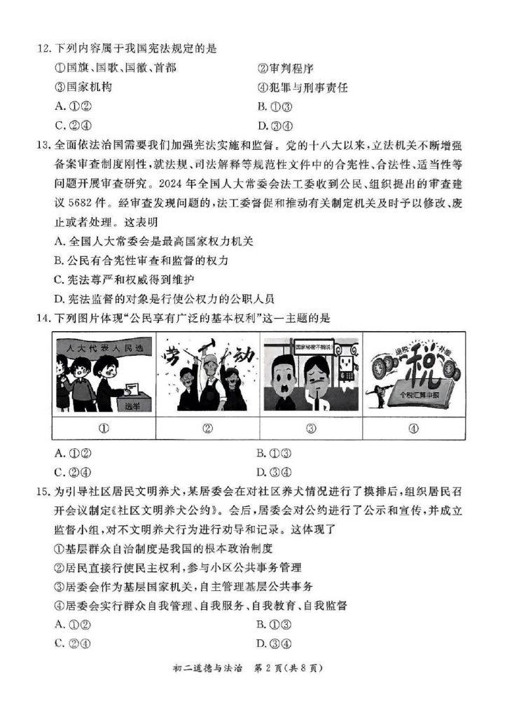 2025年北京各区初二(下)期末考已陆续开始进行,北达教研组整理了2025北京东城区初二(下)期末道法试题及答案,分享给大家。