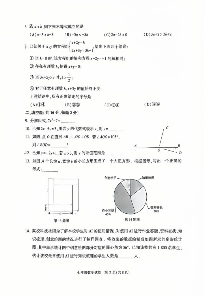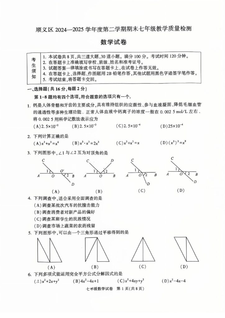 2025年北京各区初一(下)期末考已陆续开始进行,北达教研组整理了2025北京顺义初一(下)期末数学试题,分享给大家。