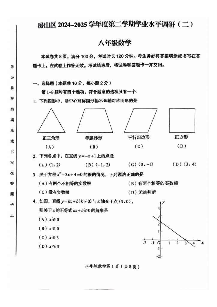 2025年北京各区初二(下)期末考已陆续开始进行,北达教研组整理了2025北京房山初二(下)期末数学试题,分享给大家。