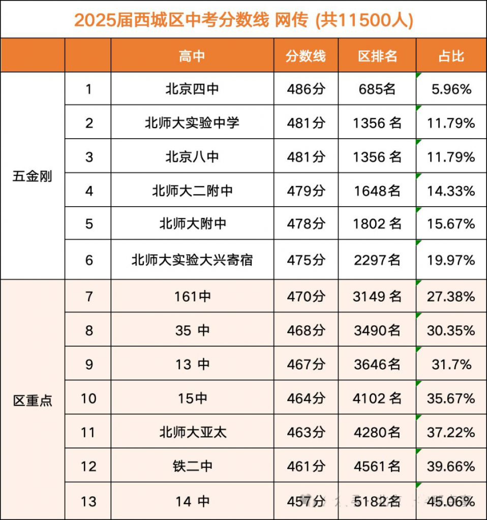 2025年中考录取分数线,因为各区都没有官宣中考录取分数线(因为官方不让发,现在都是往传版)北达教研组目前收集整理的2025北京西城区中招录取分数线&区排名(网传版),分享给大家了解参考,其中部分没有更新的学校分数线家长可以分享到评论区
