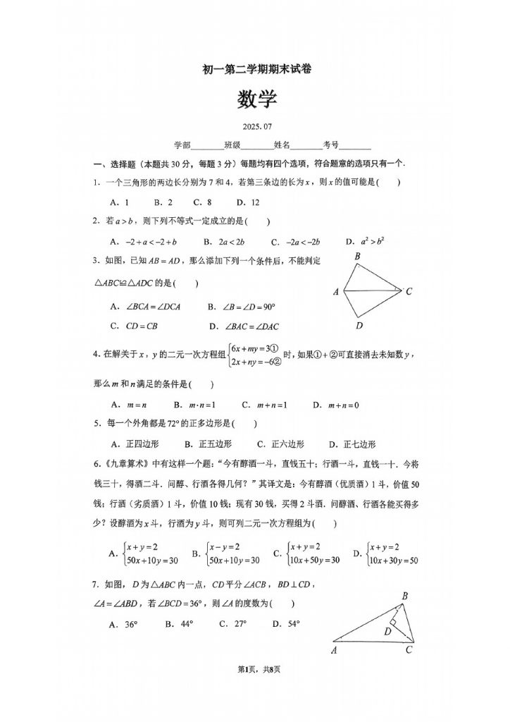 2025年北京各区初一(下)期末考已陆续开始进行,北达教研组整理了2025北京清华附中初一(下)期末数学试题,分享给大家。 2025北达中考复读全日制,应届生全日制,外地回京全日制…