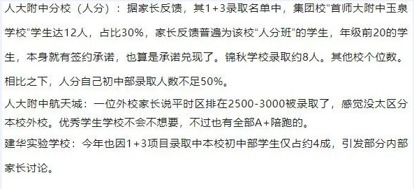总体来说,海淀1+3项目的录取格局之变,清晰折射出升学路径的多元化趋势。部分顶尖高中通过1+3主动向外校揽才,集团内部尖子生则手握“0.5+3”等更多筹码。对于海淀的学生和家长来说,也算是一个重大利好吧!