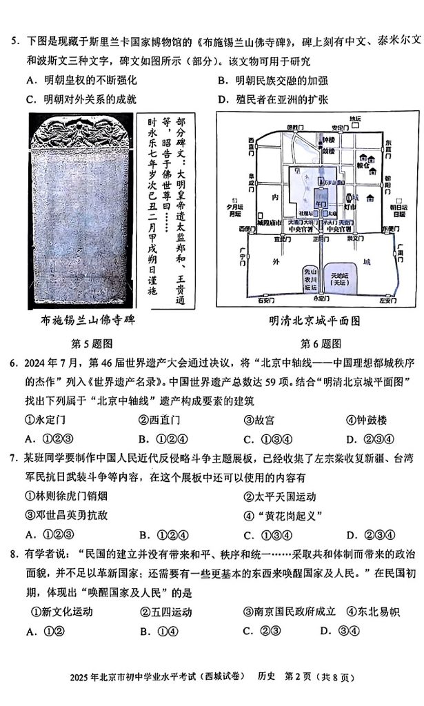 北达教研组整理了2025北京西城区初中学业水平考试历史试题及答案。供大家参考,欢迎转发分享!